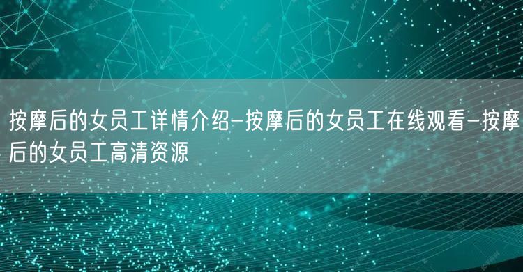 网络上有很多关于按摩后女员工的图片和视频资源,其中不乏高清画质的内容。这些资源为观众提供了近距离的观察和感受,让我们更直观地了解按摩后女员工的身体变化和情感释放。通过观看这些高清资源,我们可以更深入地了解按摩对女员工身心的影响,同时也能感受到她们在放松状态下的美丽与自信。