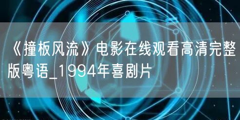 现在,您可以在线观看高清完整版粤语电影《撞板风流》。画面清晰,音质优良,让您身临其境地感受这部电影的魅力。无论是经典的台词还是精彩的剧情,都能让您回味无穷。同时,这也是一个了解香港电影文化的好机会,感受香港电影带给我们的欢乐与感动。