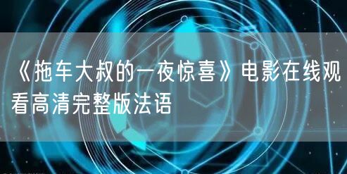 赶快行动起来,让我们一起在线观看《拖车大叔的一夜惊喜》高清完整版法语电影吧!让我们一起分享这份惊喜和感动,一起度过一个美好的夜晚。